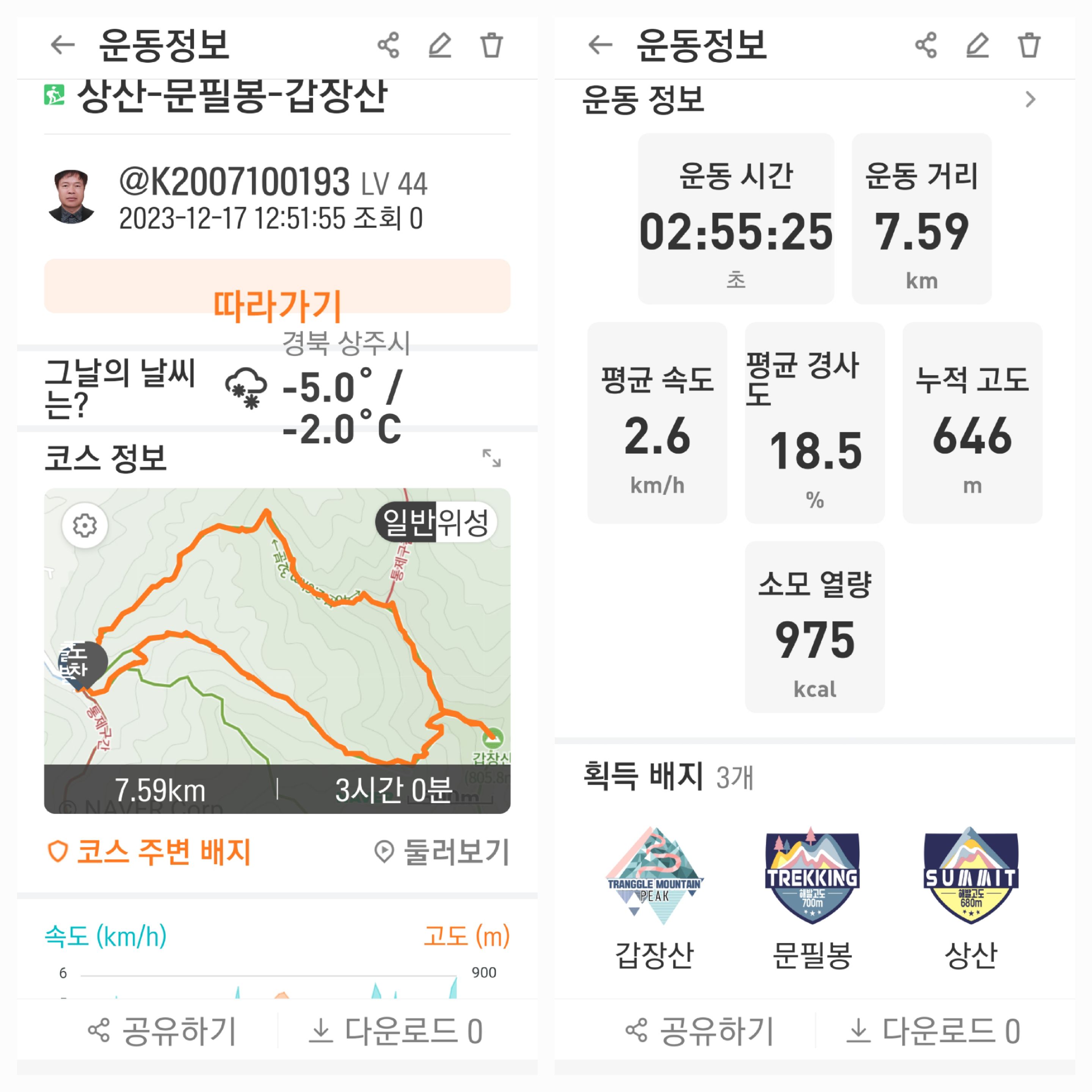 2023년12월17일(일) 경북 상주시 낙동면 갑장산(甲長山)806m(BAC명산100+) 강추위속 산행