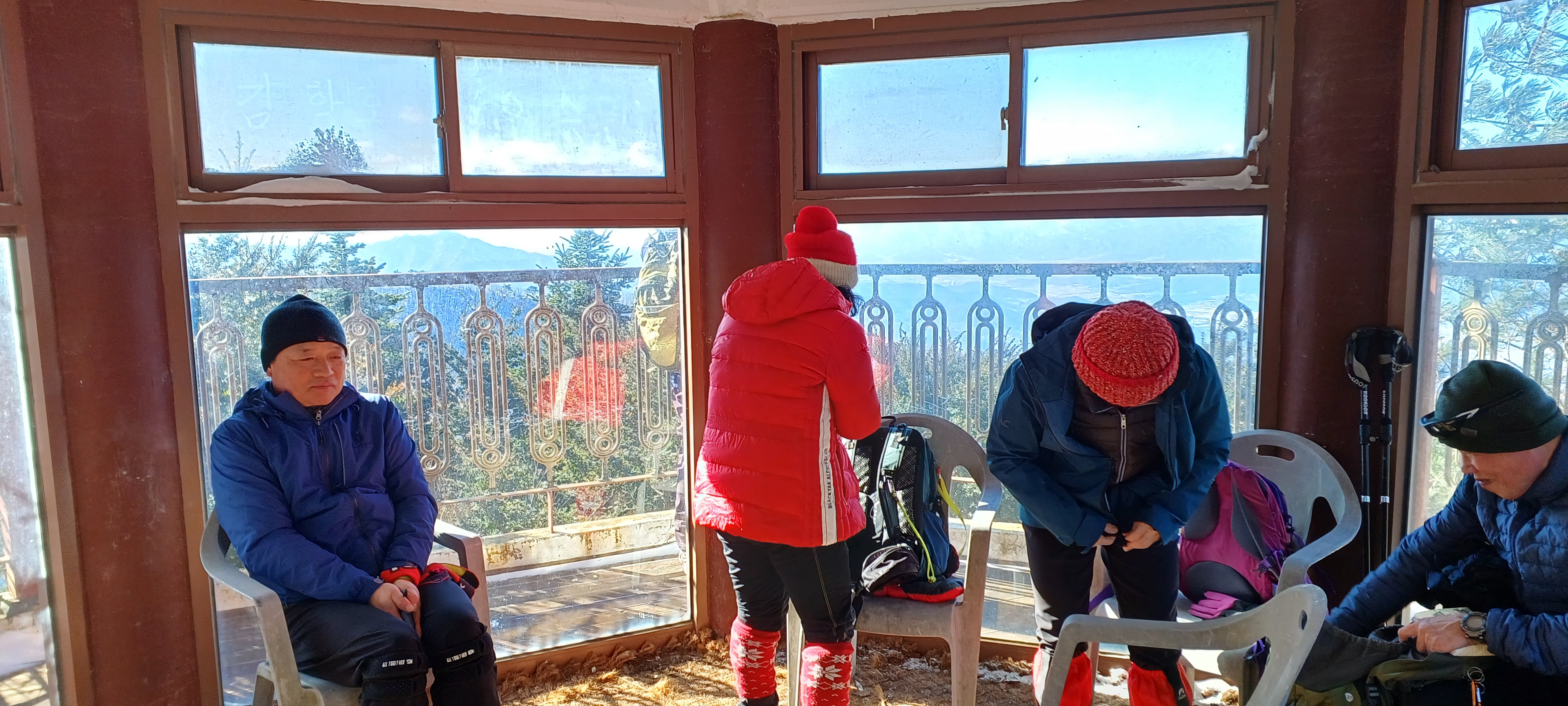 👇상주 갑장산 전망대 11:22 강풍과 추위를 피할수있는 유일한곳-점심해결