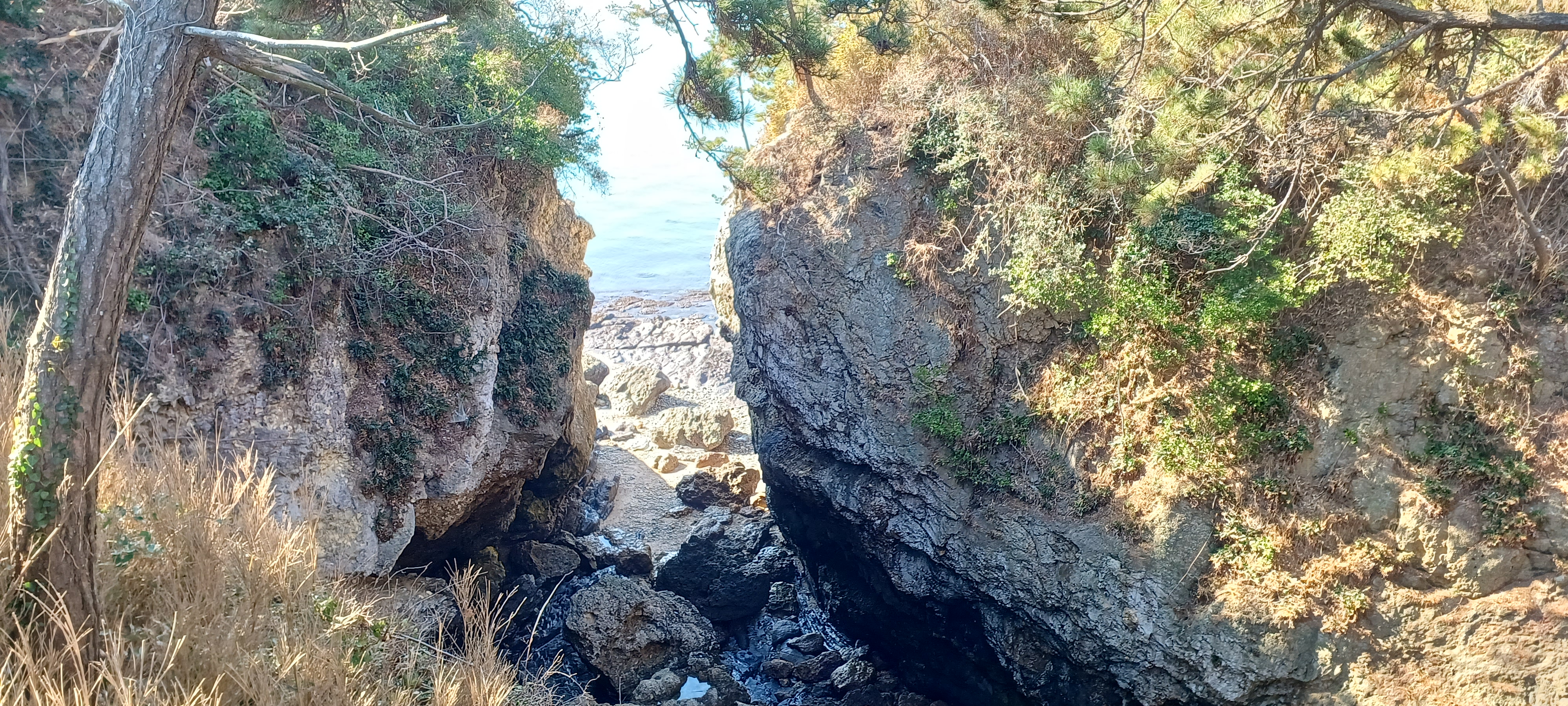 유적 바로 북쪽에는 육지로 10m 정도 만입(彎入)해 들어온 해식동굴(海蝕洞窟)이 있다. 그 주변으로도 역시 해식동굴이 많이 발달해 뛰어난 경관을 이루고 있다. 이러한 지형적 특징은 근처를 항해하던 사람들에게 기억에 남을 만한 곳으로 인식되었을 가능성이 크다.