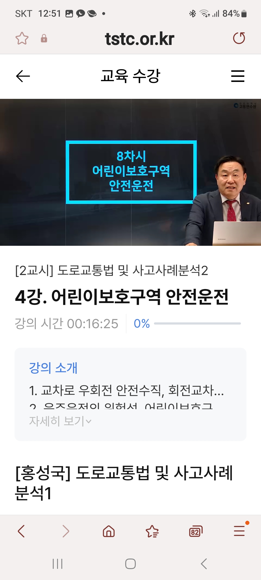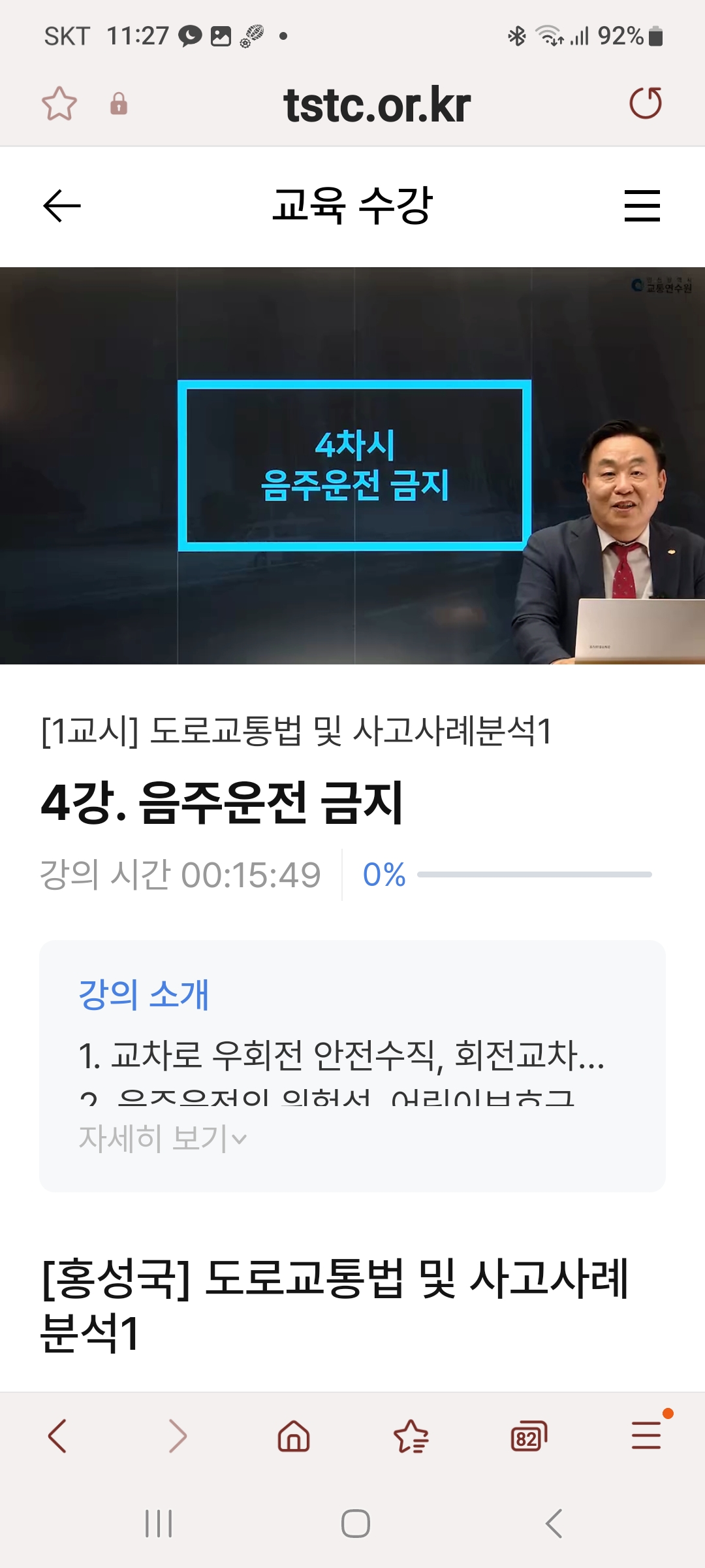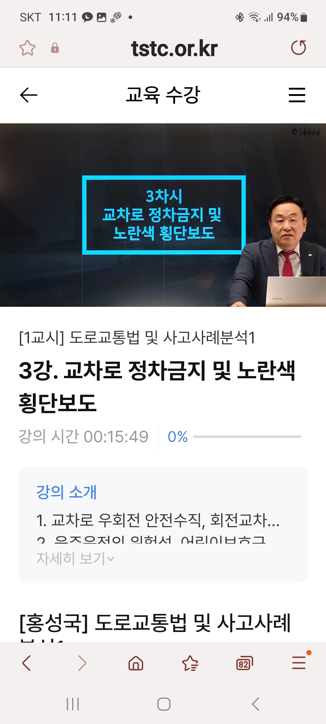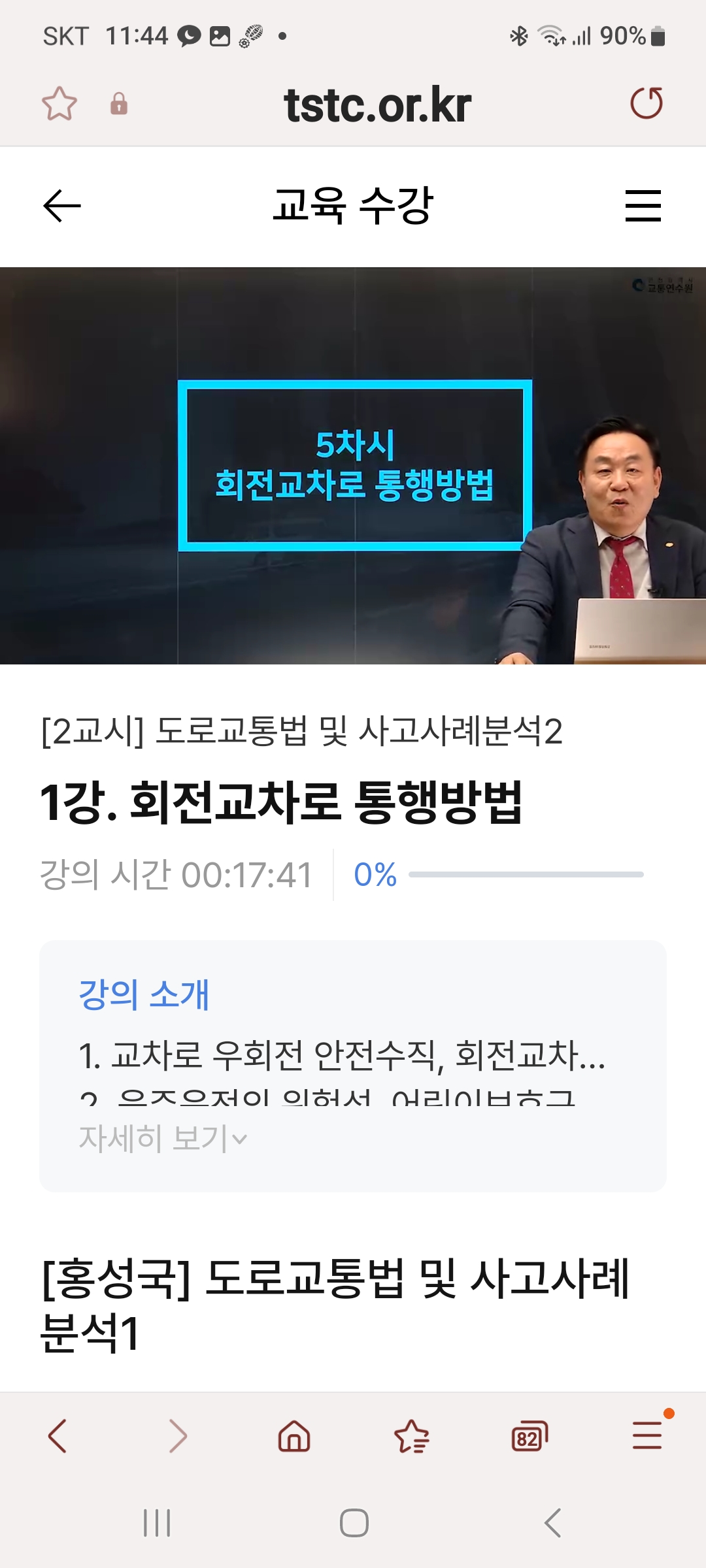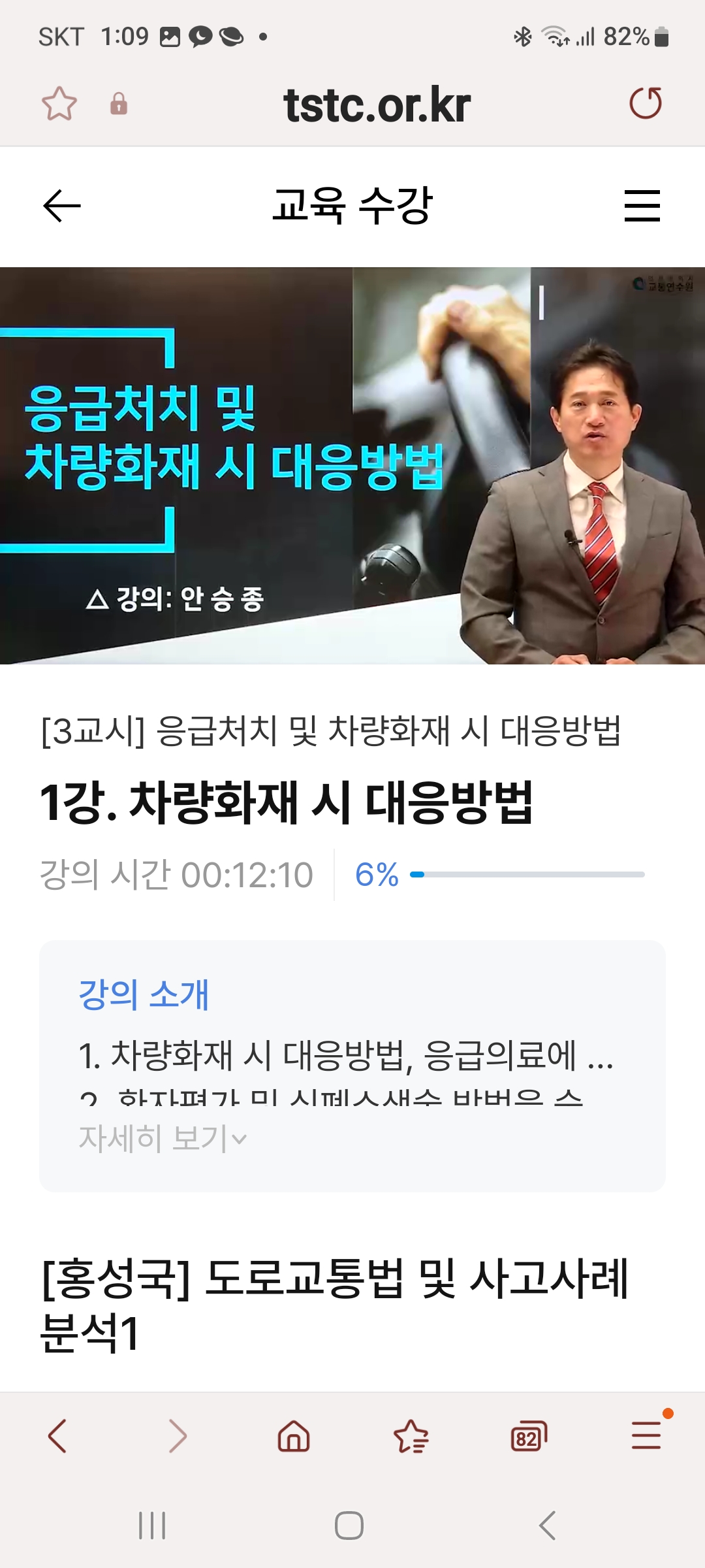 예약방법:예약사이트: 인천교통연수원 홈페이지(https://www.int.or.kr/)예약후 문자오면 교유키간내 언제든 시청가능