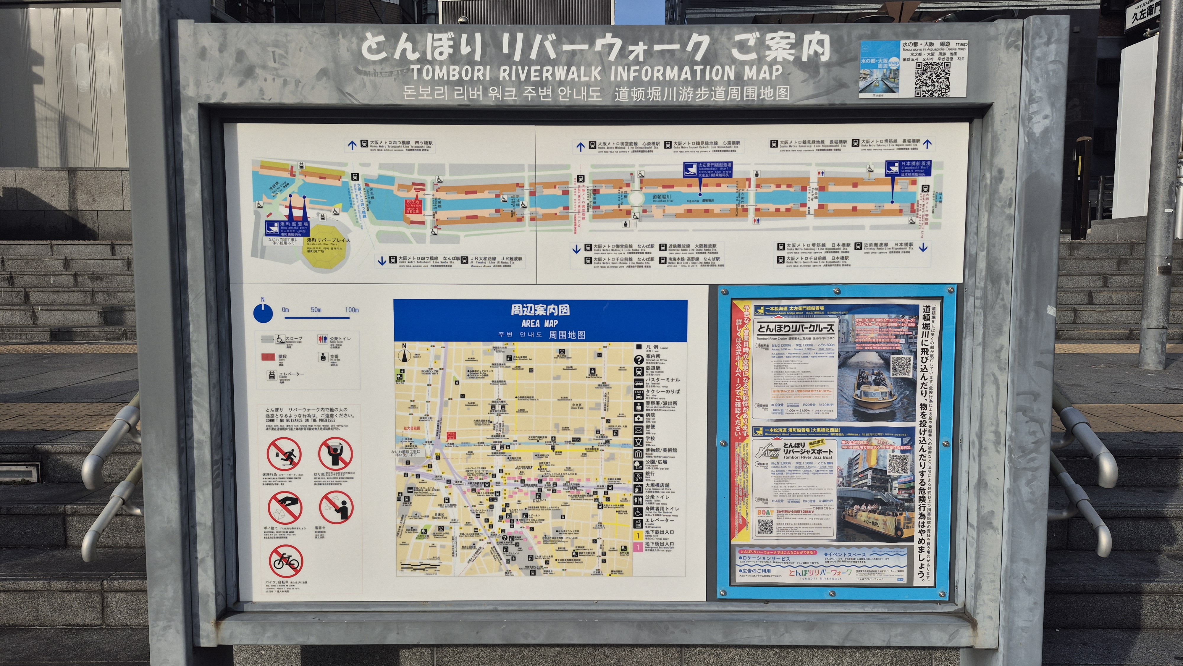 ⬇️ 도톤보리강(道頓堀川) 유람선 관광마치고 번화가 초밥집 찿아가는중