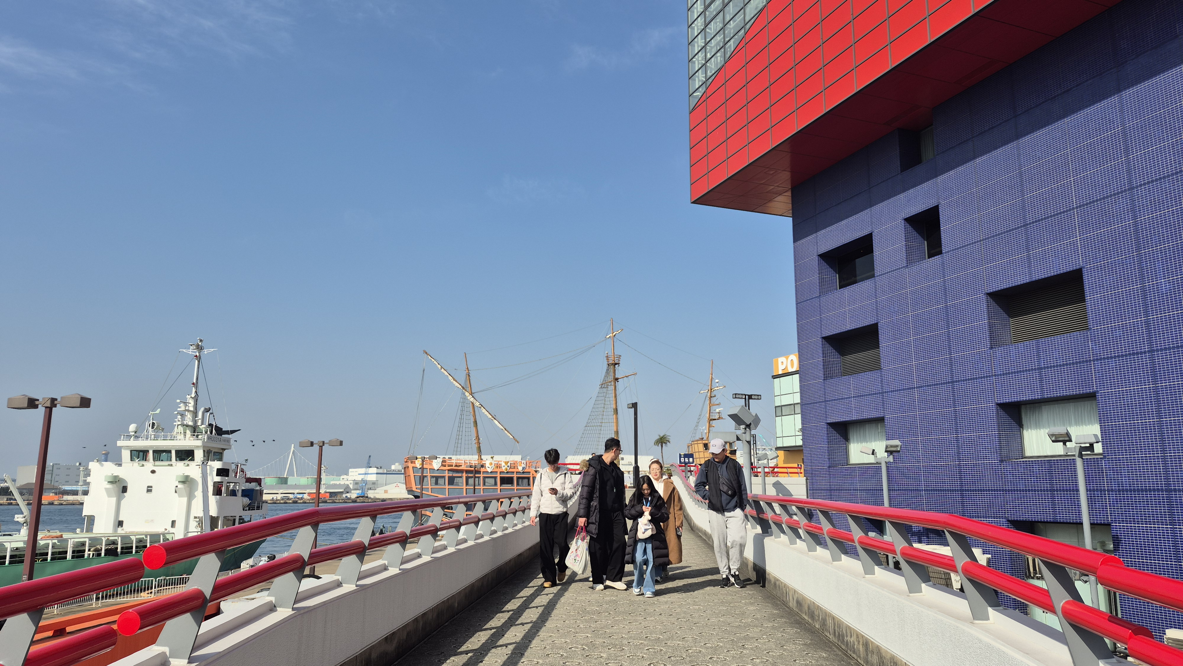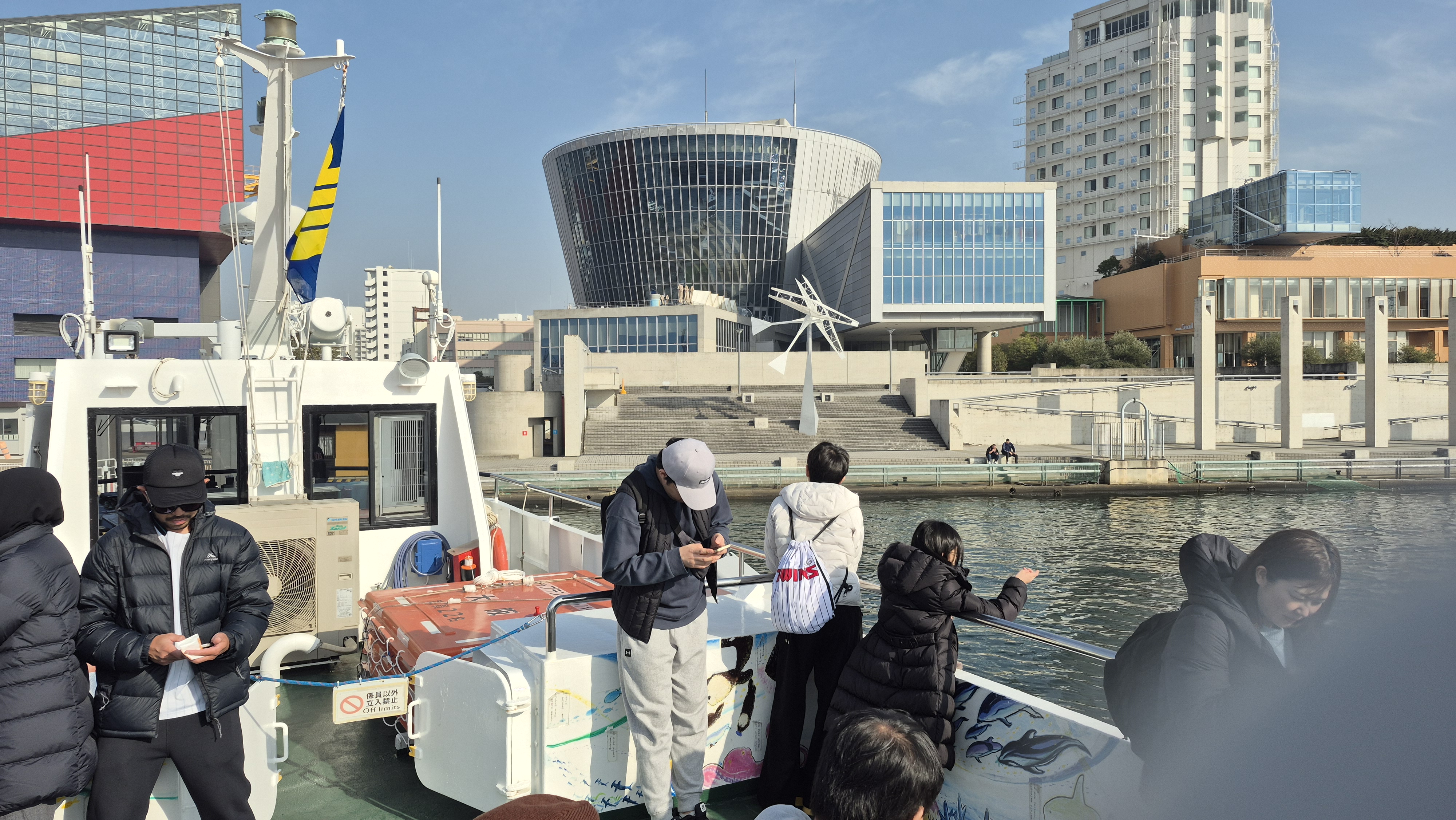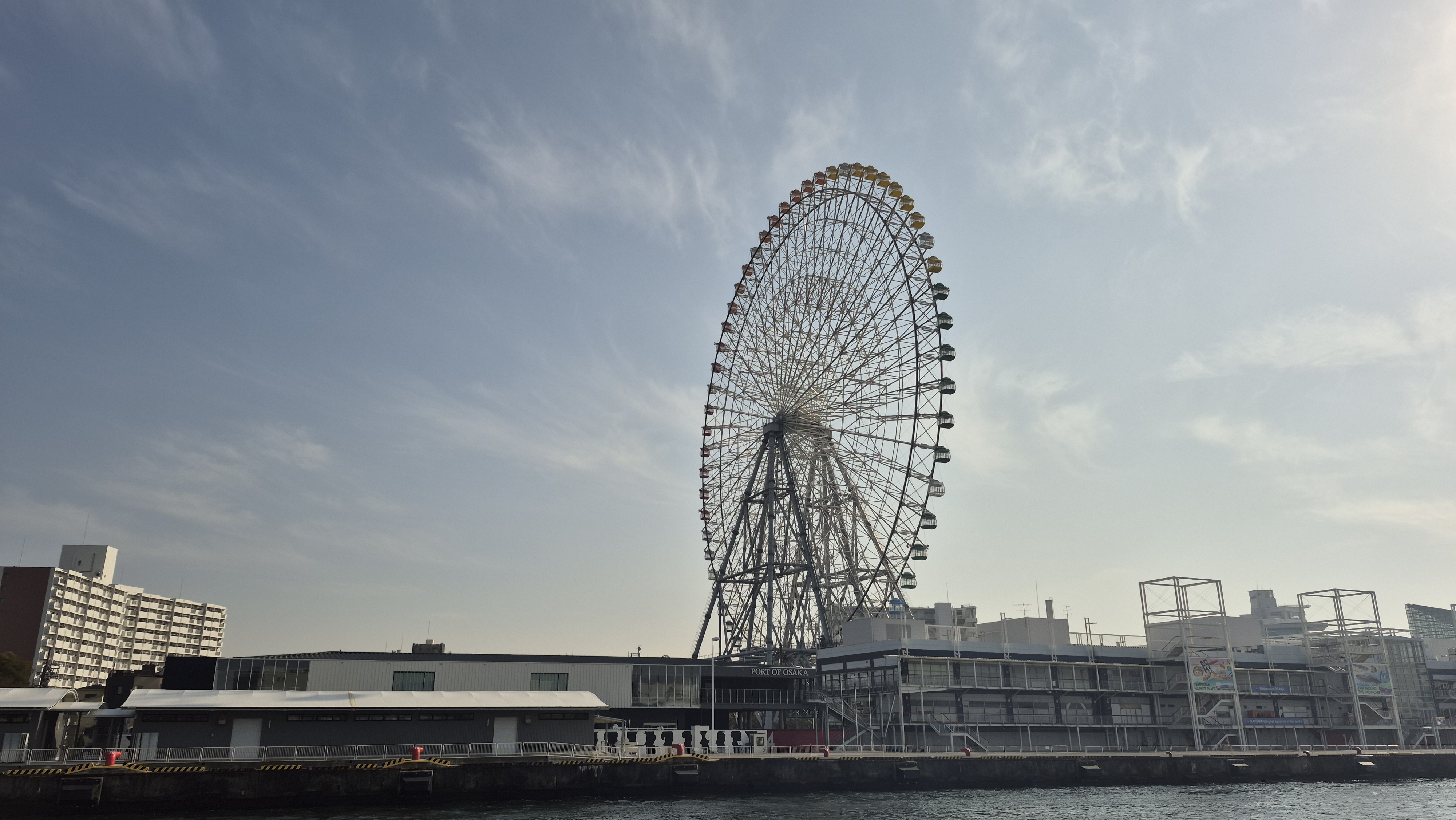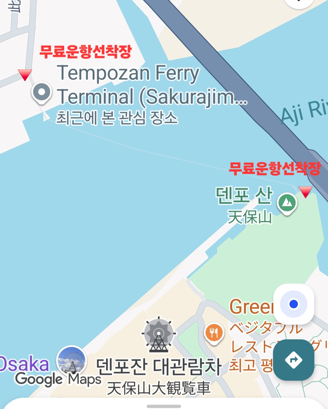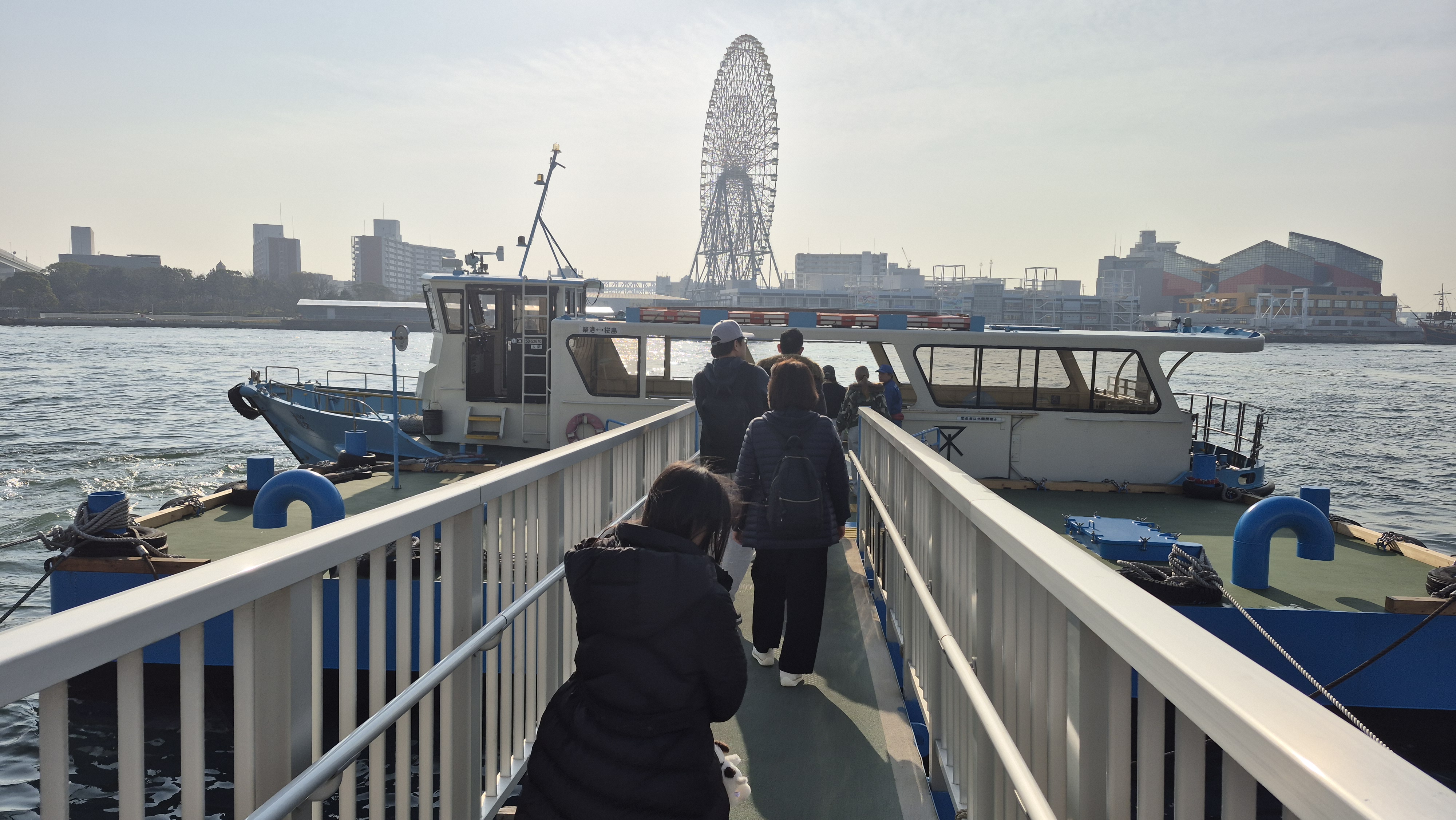 숙소가 유니버셜스튜디오역 근처라면 오사카아쿠아리움, (KAIYUKAN,해유관(海遊館)수족관)까지 가는방법은 여러가지가있지만 Aji River(安治川) 건너편에 위치하고있어서 배를타고 가는것이 가성비가 좋다고볼수있다. 항구는 두군데가있다, 우리는 항구찿아 걷다가 무료로 운행하는 배를탔다. 무료운행선착장은 좀더 걸어서타고 내려서도 덴포잔공원 선착장에서 내려 공원을 지나야한다, 유로 선착장은 유니버셜스튜디오역 호텔 바로뒤에서 승선하고 해유관에서 바로 하선한다 승선권은 200엔 운항시간은 해유관기준 1시간간격 정시출발